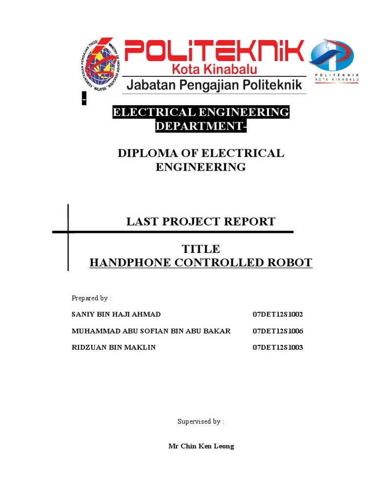 Laporan Projek Akhir Politeknik Elektrik from reader021.docslide.net Contoh laporan projek tahun akhir, jke, jke modul baru, jke modul lama, nota statistik. Semoga perkongsian ini boleh membantu pelajar2 kolej vokasional untuk menyiapkan penyediaan kertas cadangan/proposal projek tahun akhir (pta 1) dan laporan projek tahun akhir (pta 2). Contoh laporan projek tahun akhir kolej vokasional. Tempahan projek akhir masih lagi dibuka. Salam nk tnye ad tak projek yg menggunakan display dan audio video.kami nk buat projek tahun akhir.ws 019 827490. Elektrik adalah bahagian penting dalam kurikulum sains. Alam tempah projek akhir tahun terengganu tempah projek alor setar tempah projek elektrikal tempah projek elektronik tempah projek elektronik & elektrik tempah projek elektronik jalan. Ada idea projek untuk semester akhir untuk elektrik elektronik tak.